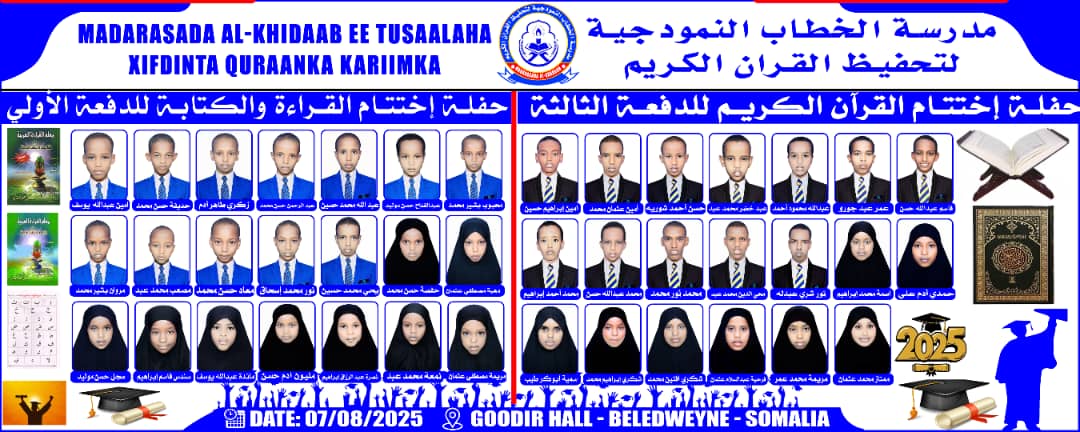 Baladweyne ( Radio Beerlula )-Magaalada Baladweyne ee xarunta Gobalka Hiiraan ayaa lagu qabtay munaasabad lagu maamuusayay arday dhameeysatay Xifdinta qur’aanka kariimka iyo Akhris qoraalka islamarkaana ka aflaxday Machadka Al khadhaab.