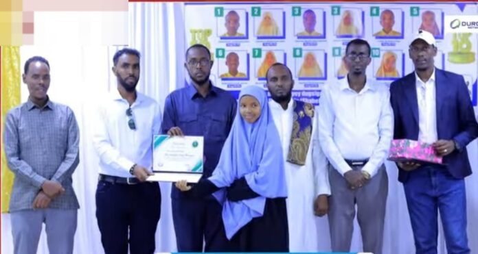 Baladweyne ( Radio Beerlula)- Magaalada Bosaaso ayaa lagu qabtay munaassbad Lagu Maamusayey 10ka Arday Ee ugu sareysay Imtixaanka Tijaabada ah Ee Fasalka 8aad Dugsiyada Dhexe Magaalada Bosaaso oo uuqabtay Dugsiga Maxamed Cawaale