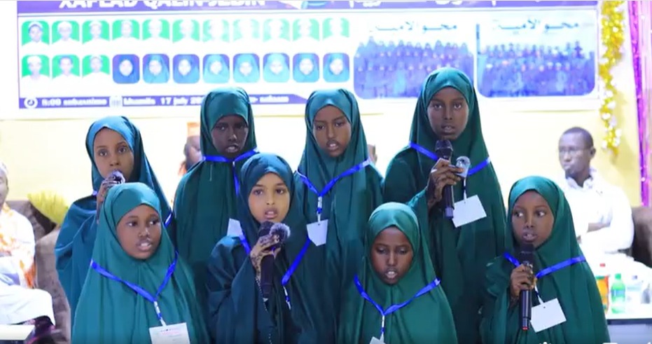Baladweyne ( Radio Beerlula )-In kabada 95 arday oo dhameeysey Qur’aanka kariimka, iyo hingaada islamarkaana ka aflaxday Madarasadda Nasru diin ayaa munaasabada qalin jabin ah loogu qabtay magaaada Baladweyne ee xarunta Gobalka Hiiraan