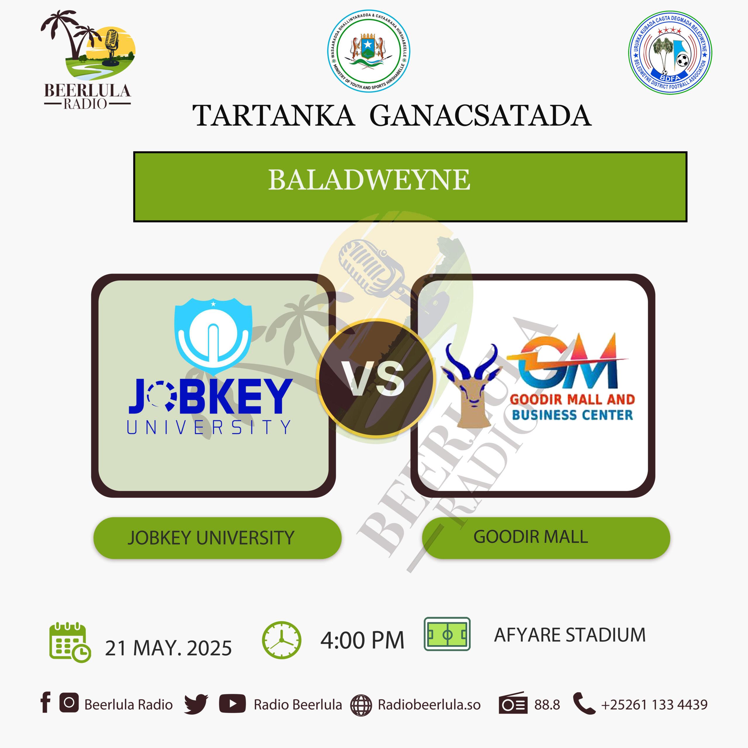 Labada kooxood ee kala ah jaamacadda Jobkey iyo Goodir Mall ayaa galabta ku wada ciyaari doona garoonka kubadda cagta Afyare.