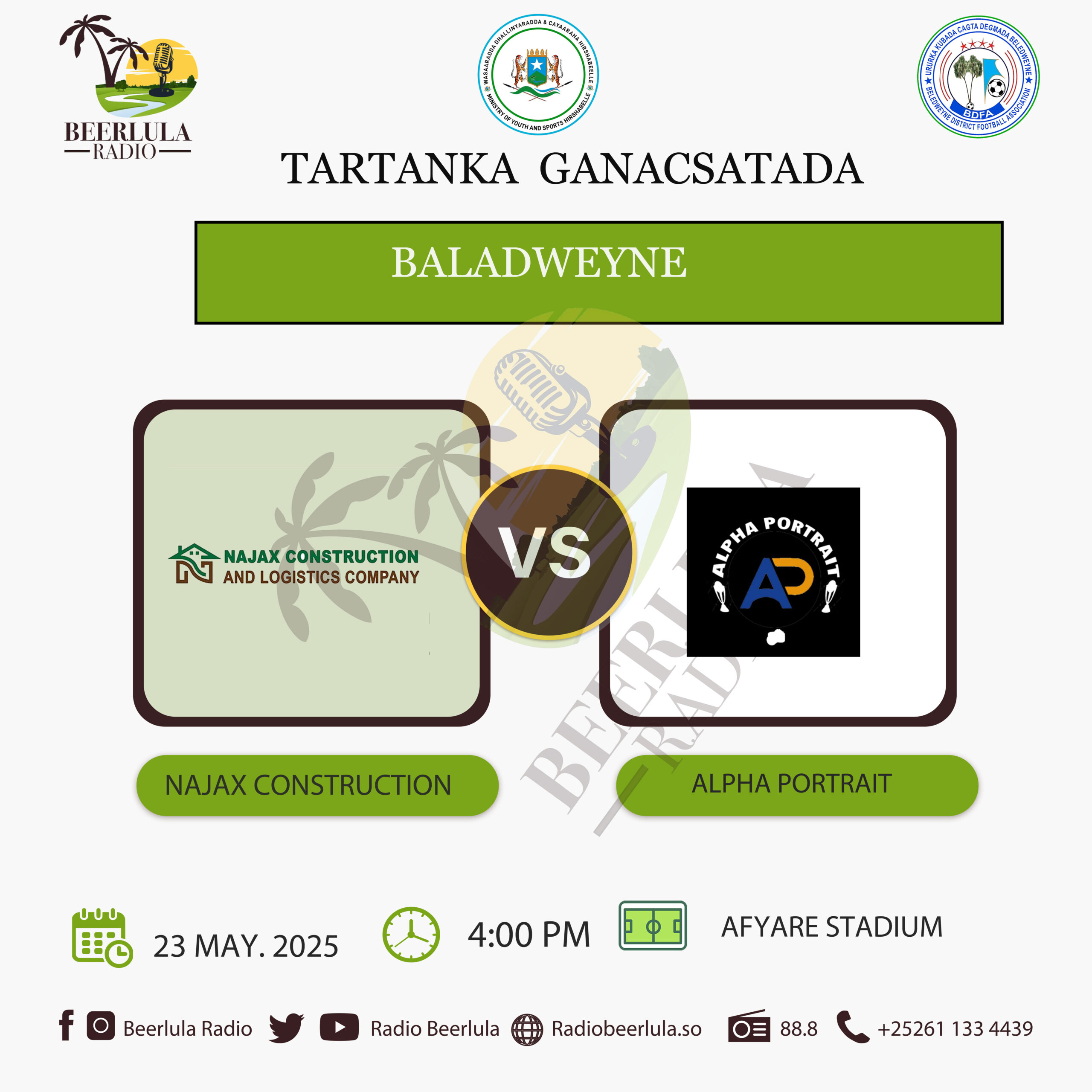 Baladweyne (Radio Beerlula)-Kooxaha kubadda cagtaΒ πππ£ππ± π’π²π¨ ππ₯π©π‘π ayaa galabta ciyaar xiiso badan ku dhaxmari doonta garoonka kubadda cagta πππ²ππ«π ee magaalada Baladweyne.