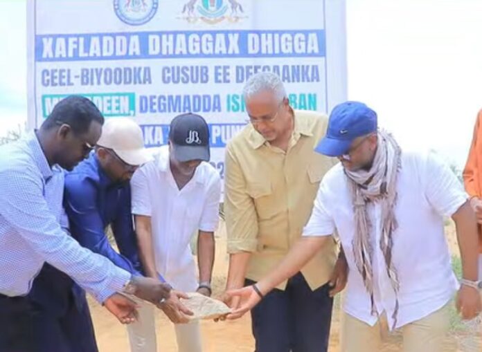 Baladweyne ( Radio Beerlula )-Wasiirka Wasaarada Tamarta Macdanta iyo Biyaha Dowlad goboleedka Puntland Liibaan Muuse Boqor oo ay Weheliyaan Xubno ka tirsan Golaha Wasiirda iyo Barlamaanka Puntland, ayaa Deegaanka Meeladeen ee Degmada Iskushuban Ka dhagax dhigay Ceelbiyood laga Hirgelinaayo Deeegaankaas,