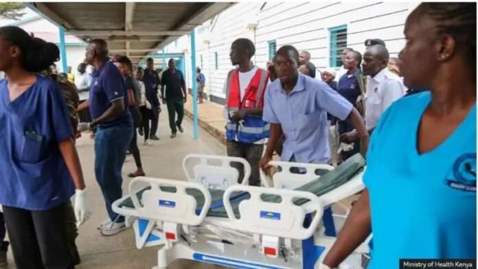 Baladweyne ( Radio Beerlula )-Gaari bas ah oo ay saarnaayeen dad tacsi ka soo laabtay ayaa ku burburay galbeedka Kenya, waxaana ku dhintay 25 qof, sida ay sheegeen maamulka deegaanka.