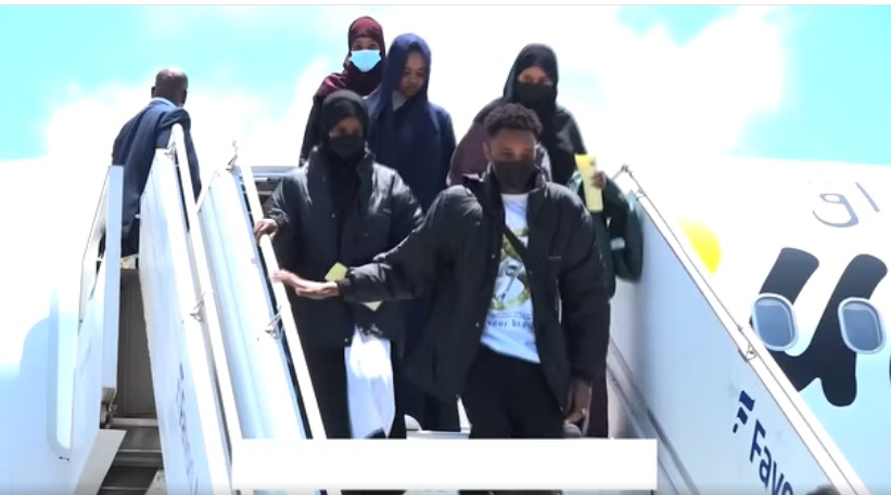 Dhalinyaradan ayaa garoonka diyaaradaha Muqdisho waxaa kusoo dhaweyay wasiiro iyo Xildhibaano katirsan dowlada Soomaliya.