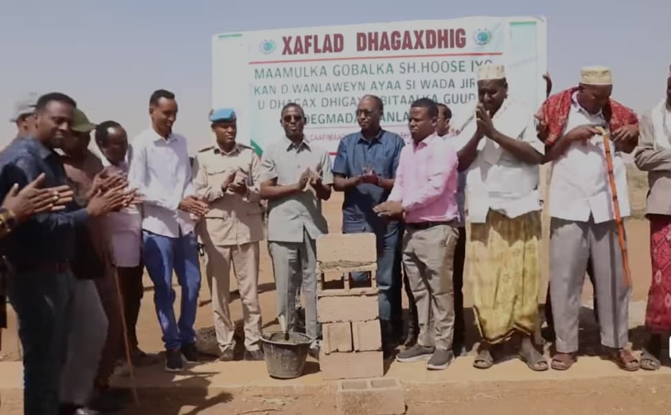 Baladweyne ( Radio Beerlula )-Gudoomiyaha Gobalka Shabeellaha Hoose Ibraahin Aadan Cali Najax ayaa dhagax dhigay dhismaha isbitaalka Guud ee Degmada wanlaweyn oo si isku tashi Bulsho ah lagu dhisaayo.