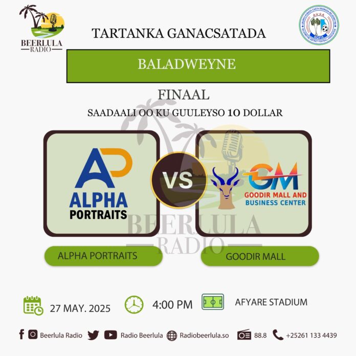 Baladweyne (Radio Beerlula)- Kooxaha kubadda cagta Goodir Mall iyo Alpha Portraits ayaa galabta ku balansan gunaanadka ama finalka tartanka ganacsatada Magaalada Baladweyne.