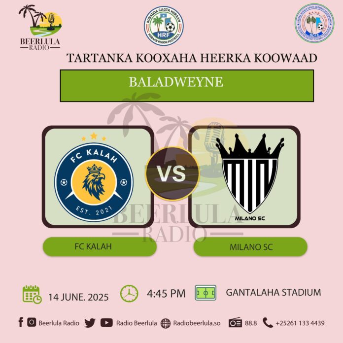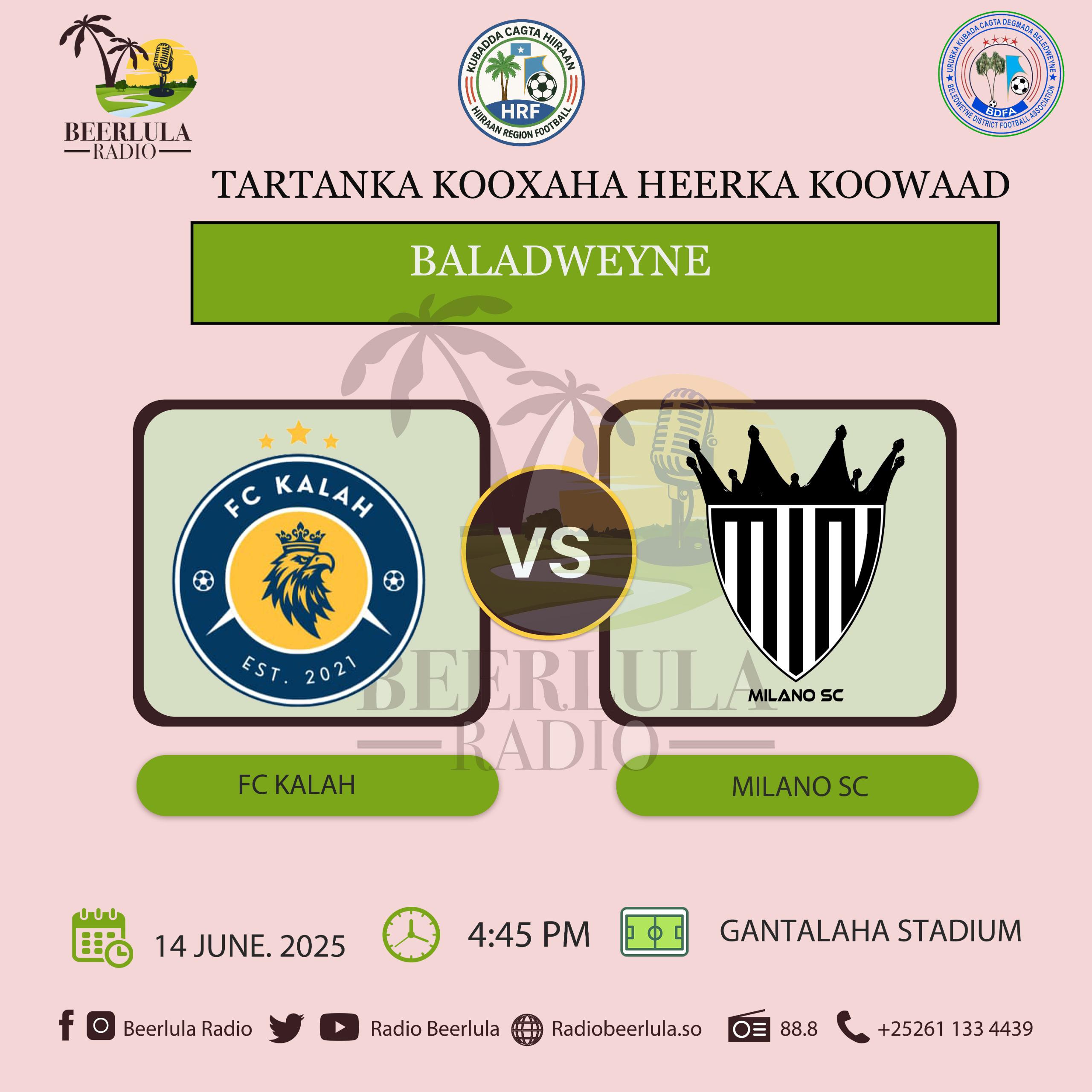 Baledweyne ( Radio Beerlula )-Magaalada Baladweyne ee xarunta gobolka Hiiraan ayaa la filayaa ineey galabta ku ciyaaraan Kooxaha FC Kalax iyo Milano SC.