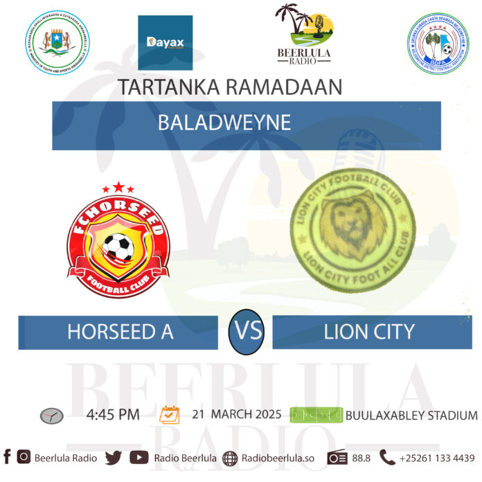 Baladweyne (Radio Beerlula)- Kulan xiiso badan oo u dhexeeya kooxaha Horseed A iyo Lion City  ayaa galabta 4:45 PM ku dhaxmari doona garoonka kubadda cagta Buulaxaabley, iyadoona labadan kooxood mid kood ay soo bixi doonto.
