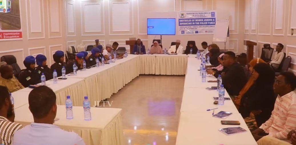 Baledweyne ( Radio Beerlula )-Wasiirka Amniga Gudaha Jubbaland, Sareeye Gaas Yusuf Xuseen Cismaan Dhumaal, ayaa magaalada Kismaayo ka daah-furay kulanka wadatashiga ee lagu xoojinayo doorka haweenka ee ciidamada booliska Jubbaland.