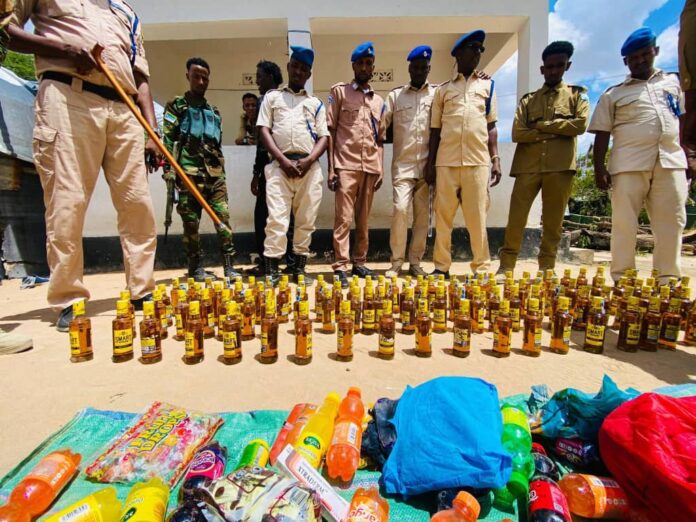Baledweyne ( Radio Beerlula )-Ciidanka Booliska degmada Dhoobley ee gobolka Jubbada Hoose ayaa gacanta ku soo dhigay maandooriye khamri ah oo noocyo badan iskugu jira, iyo ninkii watay, kadib howlgal qorshaysan oo ay ka sameeyeen gaadiidka magaalada soo gala iyo gudaha magaalada.