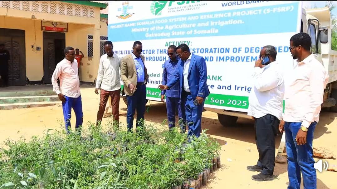 Baledweyne ( Radio Beerlula )-Wasiirka wasaradda beeraha iyo Waraabka Maamulka Galmudug oo gaaray Magaalada Galkacyo ee Xarunta Gobolka Mudug ayaa Kudhawaad 500 Oo Geed oo loogu tala galay cagaarinta magaalada ku wareejiyay Mamulka degmada Galkacyo.