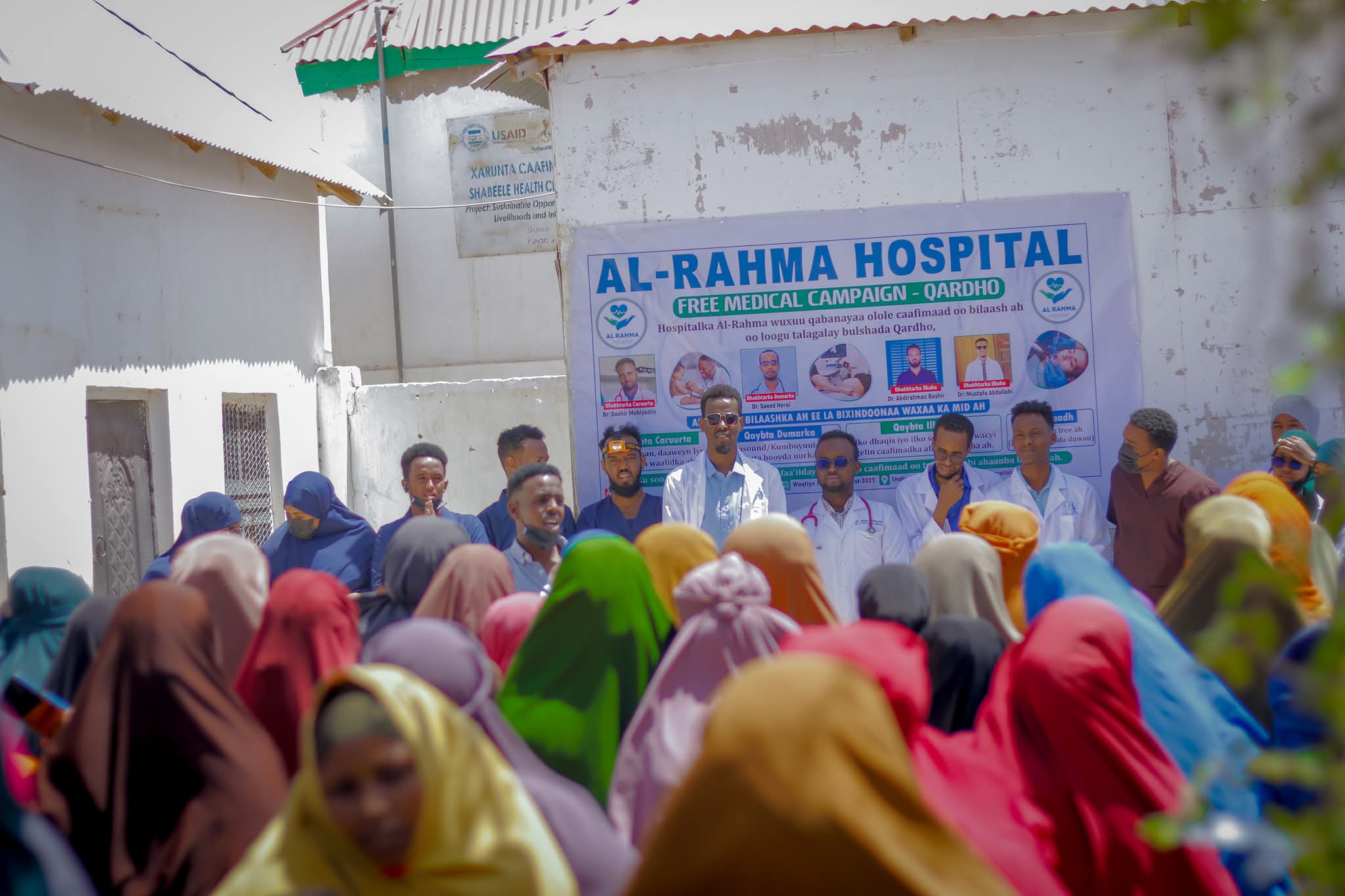 Baledweyne ( Radio Beerlula )- Dhakhaatiirta iyo hawl wadeeno ka socda isbitaalka Daryeelka Caafimadka ee Al-rahma Hospitaal ayaa olole Caafimaad oo bilaash ah islamarkaana isugu jira Baaritaano,daweeyn iyo Wacyigelin u sameeyay qoysaska danta yar ee ku nool Kaamka Shabeelle ee magaalada Qardho.