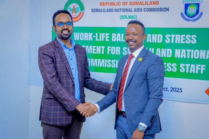 Baladweyne ( Radio Beerlula )-Agaasimaha Ururka Xakamaynta Xanuunka HIV AIDS-ka ayaa tababar ku saabsan ka hortagga xanuunkan Ugu soo gabagabeeyey Magalada Hargaysa qaar ka mid ah shaqaalaha xafiiska wacyigalinta ee Ururkaas